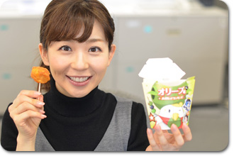 からあげくんを食す写真は、富川アナに一眼レフで撮ってもらいました。