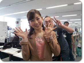 今日も笑顔☆…なんてしていたら、いつの間にスタッフが後ろにぃ!