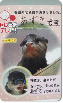 コツメカワウソの赤ちゃんの名前、『あずき』に決まりました☆