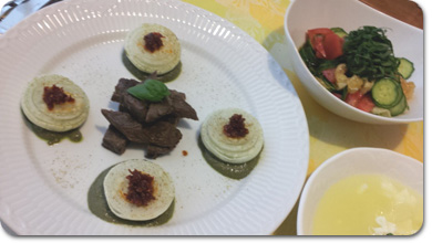 焼いた玉ねぎに、チーズとトマトとバジルソースを合わせてみました。