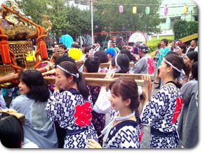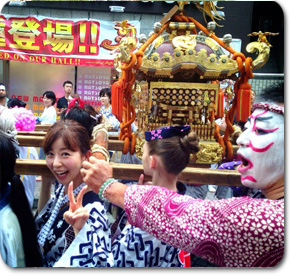 男前なお姉さま方に先導されて、お神輿を担いだ私たちが後に続きます。