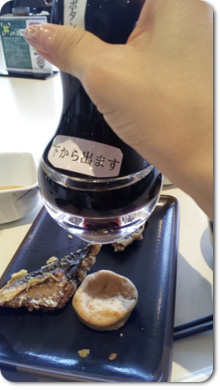 魚だけでなく近くにあった携帯まで、優しく醤油のミストで包みこんでしまいましたが、