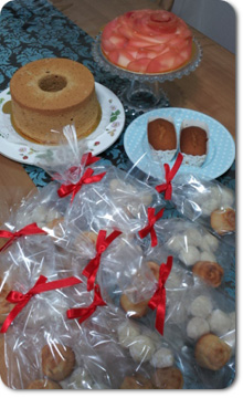 紅茶のシフォンと、バラのチーズケーキ、フィナンシェ、クッキー。