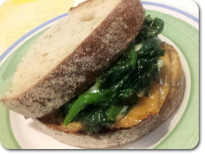 ソテーしたホウレン草にグリエルチーズを絡めて