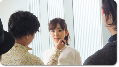 メイクの堀さんが、衣装によってリップの色を変えてくださっています。