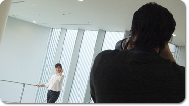 元モデルのアキラさんが、自然なポージングを教えてくださっているところ。