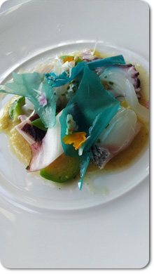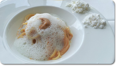 このパスタは、ガウディと井上雄彦さんによる化学変化をイメージしたもの。