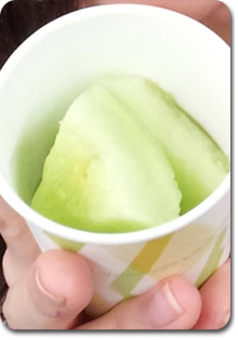 社内の緑のカーテンプロジェクトでアナウンス部が育てたメロンで、