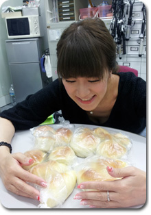 いつもお世話になっているメイクの甲斐さんが、パンを焼いて持ってきてくれました。