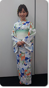 襟元に注目。右の衿を先(時間軸で前)に、左の衿を後で合わせて着ています。