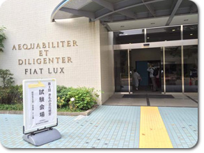 途中、着物姿の案内係の方に見とれながら、受験会場へ。