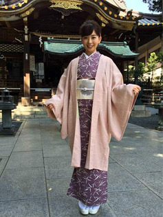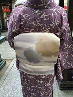 帯は雪紋。着物の色は、平安時代から人気があるという紫苑(シオン)色。