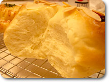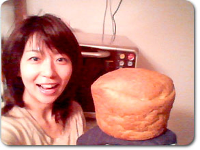 バターロール、のつもり。細長い?ぺちゃんこ、カチコチ。 食パン、のはず・・・見るも無残。外は黒こげ、中はべちゃべちゃ。 今度の食パンはうまくいった!しかしやけにデカい。しかも酸っぱい。