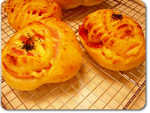焼き上がり!!!パセリをのせて、思った以上に綺麗!感激!!!!!!!!! こちらはシナモンレーズンのパン。 ふっくらしていて優しい味。 - 出来栄えにウットリ・・・。 - 最高に美味です!