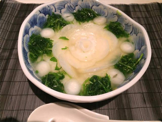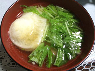 〆は祖父お手製、鶏ガラで出汁を取ったお雑煮で。