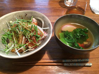ブリ丼とお雑煮。ブリは炙ってあって、特製ニンニク醤油が効いていました~