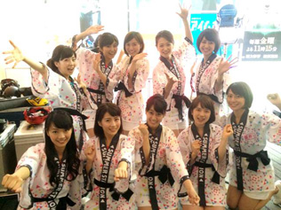 先日の記者発表には、アナウンサー10人が法被姿で参加しました。