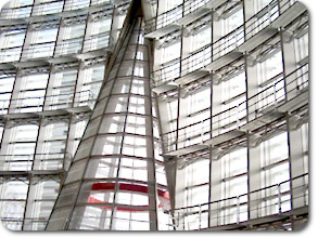 波打つ外観、吹き抜けのテラス、逆円錐型のレストラン・・・