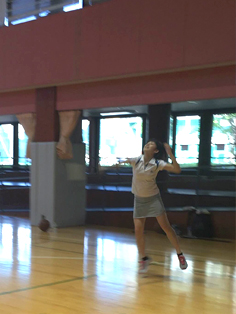レッスンも真剣。シャトルの下に回り込んで…1,2,3,4で打つ!