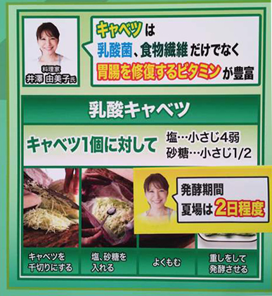 『乳酸キャベツ』なるものを番組パネルコーナーでご紹介しました。