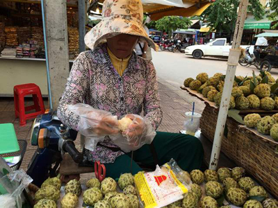 釈迦頭(シャカトウ)の実。路上の果物屋さんで購入。甘くて美味!