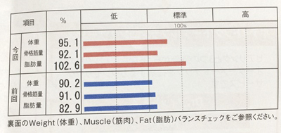 そして2年ぶりにスポーツジムで体重等を測ってみると…