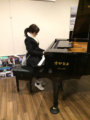 30人ほどが入れる部屋に、支援で届いた手作りのグランドピアノ。