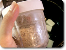 お気に入りのミルミキサーを使って細かくした煮干の粉末を使います。 |