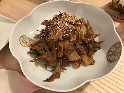 キムチと炒めると乳酸菌との相乗効果でさらに腸に良い、とのことでした。
