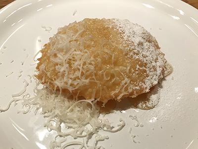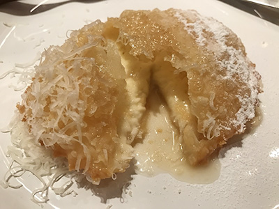 目の前で揚げたセアダスの中には羊のチーズがたっぷり。