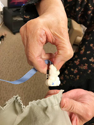 首にひっかける部分がクリップ状で、簡単に取り外しができるようになっています。