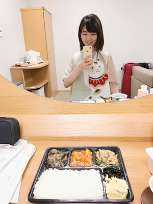 慌ただしく収録用の衣装に着替えてお弁当をかき込むこともあります。