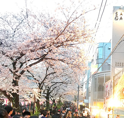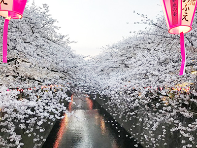 川沿いには桜色のスパークリングワインなどの屋台が並んでいて、
