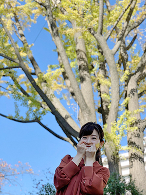 イチョウを使ったポーズが思いつきません…。ええい、鼻から生やします。