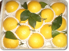 入っていたのは、日向夏。 鮮やかな黄色!太陽みたいなまぶしさ。 カットしてみると、中はみずみずしく輝いています。
