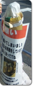 折れてしまいそうなので、シートと紐でぐるぐる巻きにして