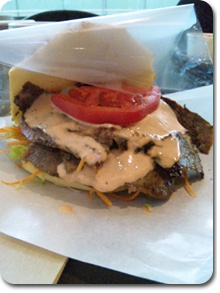 ケバブ入りのバーガー。食べ応えがありました。 |
