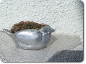 以前、かわいくて購入したスズメの姿をした苔。 太陽に当ててあげようと外に出したのをすっかり忘れ、 哀れな苔は乾いてしまい、 そして、風に飛ばされたのでした…。