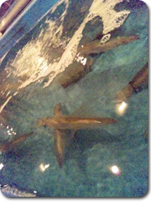 イカって、ストレスがあると、色を変えて赤くなるそうですが、 このいけすにいるイカは透明で、気持ちよさそうに泳いでいました。 イカがいるところあらば全国どこでも水槽車で駆けつけ、 生きたままのイカを集めているそうです。