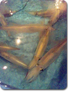 行ってみると・・・いました〜! 生きたイカが元気に泳いでいます!!