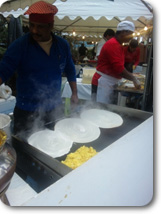 その場で焼くナンはもちろん、米粉をクレープのように伸ばした南インドの料理も。