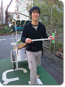 小回りのきくリヤカーを使って、