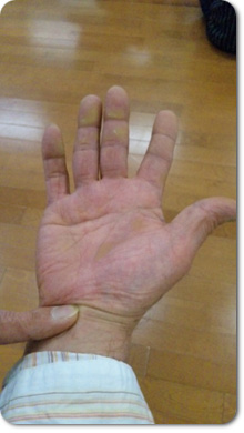 これぞ職人の手!右手の中指と薬指に、タコが。