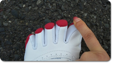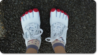 付属のへらを指の間に挟んで履くんですって。 なにせ5本指の靴を履くのは初めてだったので、 最初、薬指用の空間に中指と薬指の2本入れてしまい、 なんて窮屈なんだと勘違いしていましたが、それも愉快なハプニング。 ちゃんと履けば大丈夫! 靴という閉ざされた空間から、 まるで指の部分だけ放り出したような開放感。 つま先が軽く感じられます。 それでいて地面を蹴ると、指先で地面をつかんでいるよう。