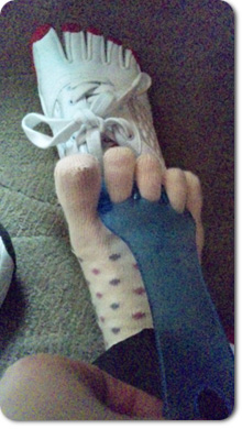 「わ!びっくりした!!裸足にマニキュアしてるのかと思った!」 「自分じゃ恥ずかしくて履けない…。」 「なんか、作業が早そうですね。」 履き方も変わっているんですよ。