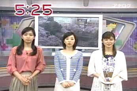 やじうまプラス5時台の月曜から金曜まで、メインMCを担当しました。テレビ朝日で一番早く始まる生放送の番組。テンポよく、分かりやすく、ニュースなどをお伝えするよう心がけてきたつもりです。朝の早い時間、他局ではもっと早い時間から放送を始めている中で、5:25にテレビ朝日にチャンネルを合わせてくださった皆さん、ありがとうございました。
