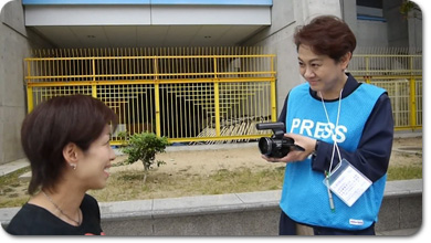 ロケ現場にて 久保知子カメラマンと |