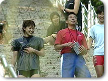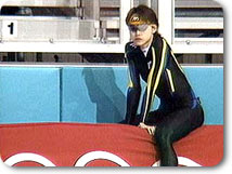 怖いんですよ、がーんって沈んでいくと、第二カーブ、アウトインで小さなカーブを回らなくちゃならないときなんか、ほんとに怖い。みんな無意識の内に力を抜くわけだよ、どの選手も、抜くって言うか、あわせに行く。日本選手はみんなどの選手も、合わせに行っちゃう。そうすると、ひざの動きを小さくしながら無意識のうちに無難に足をうごかす。それを、「練習なんだから転べよ、転べよ!」って言っていたら、そのうち、一回か二回引っかかるようになってきたんだね。本人も動きはひざが深い分動きは、動作は遅いんですよね、でも、出口ですごくいい感じになってきて、「それだ、何だ,おまえ、何を今ごろわかってきたんだ」と・・・
