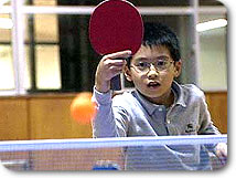 体育館の一階では剣道と柔道のスクールと呼ばれる子供たちの育成プログラムが行われていますが、 これが2階へ行くと違う活動が行われています。二階では卓球のサークル活動が行われています。年齢に関係なくスポーツを楽しむと言う活動です。」