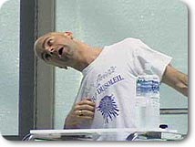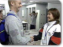 | ステファンの言うことを一言も聞き漏らすまいと真剣な井村コーチ |